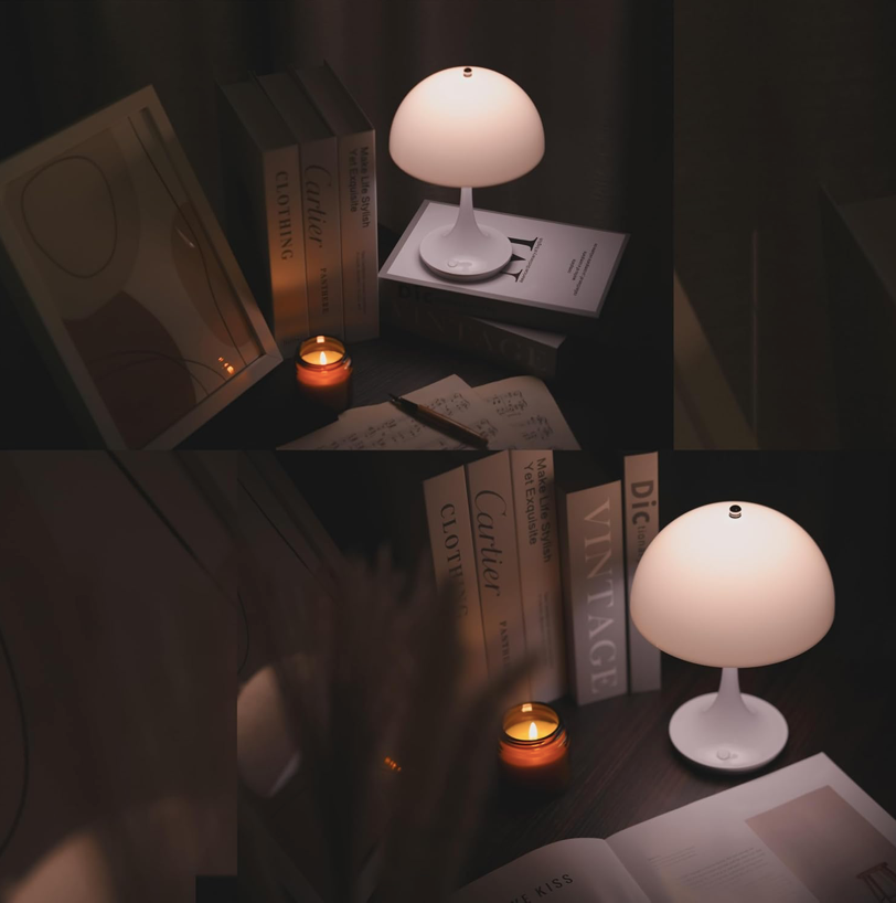Découvrez l'alliance parfaite entre style et fonctionnalité avec cette lampe de table portable sans fil, dotée d'une silhouette champignon minimaliste et intemporelle qui s'harmonise avec tous les décors. Conçue avec un abat-jour en PE écologique, elle diffuse une lumière douce et uniforme, idéale comme lampe de chevet ou éclairage d'ambiance. Léger et sans fil, son design facilite son déplacement et son adaptation à tous les espaces — chambre, salon ou bureau.